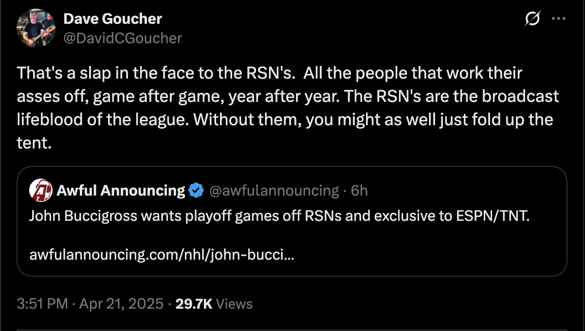 In a related story, I, too, have never played an NHL game and I am one job-contingent final capstone course shy of completing my master of sports leadership with a concentration in professional sports administration, as well as a decade in live sports production under my belt and over 20 years of watching hockey.
